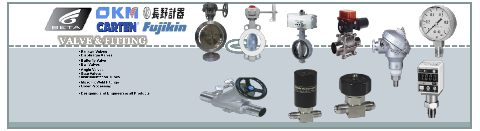 高純不銹鋼EP、BA/MP、AP等級管子/管道/管件;高純不銹鋼隔膜閥、波紋管閥、蝶閥、球閥、針閥、調(diào)壓閥等等;超純VCR、焊接、卡套接頭;以及設(shè)備應用材料:壓力傳感器、壓力表、鋼瓶電子稱、火焰探測器、氣體探測器、鋼瓶緊急切斷裝置、加熱毯、加熱線、PTFE保溫纏繞帶;化學品供應系統(tǒng)中的PFA閥門以及括口和焊接接頭,不銹鋼內(nèi)襯PFA/PTFE管道、閥門、接頭等配件。